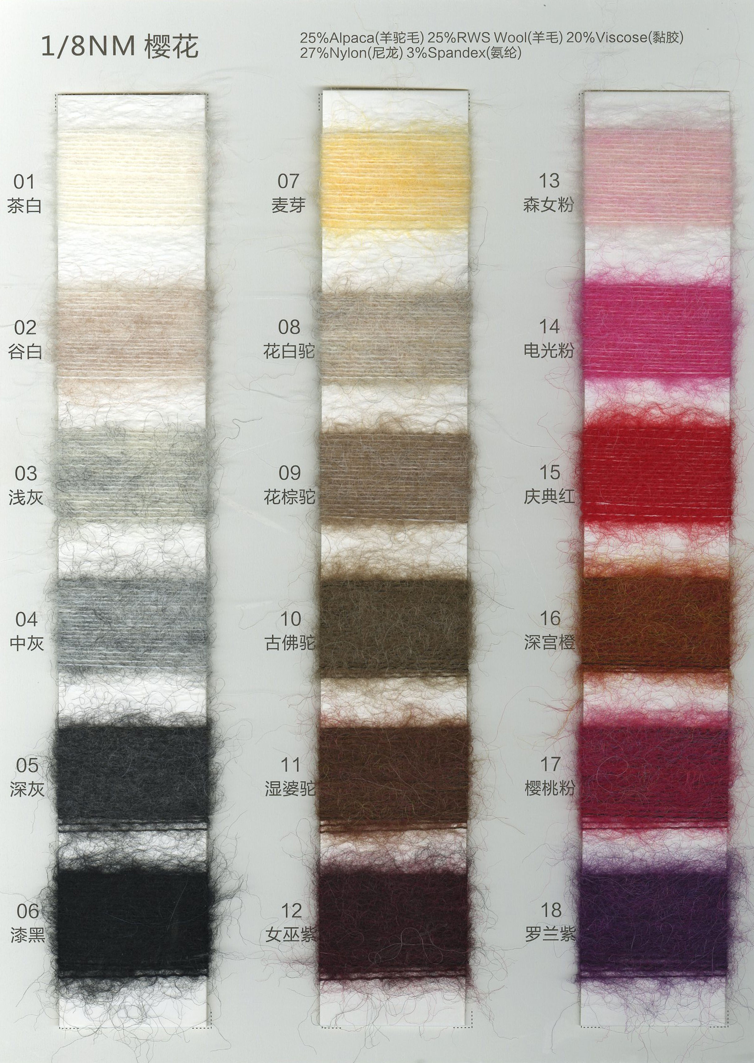 25%羊驼毛 25%羊毛 20%黏胶 27%尼龙 3%氨纶